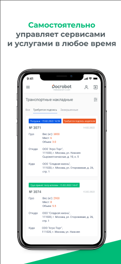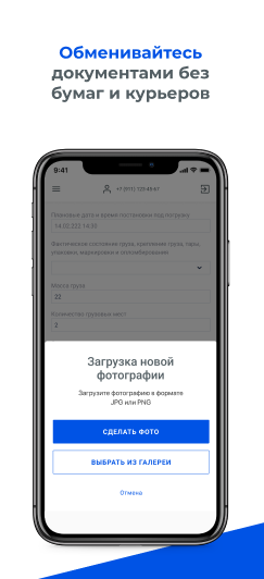 1. Приложение позволяет просматривать и подписывать электронные транспортные накладные на смартфоне и планшете. 2. При подписании накладной на этапе погрузки или выгрузки водитель может отправить другим участникам перевозки реальные фотографии груза и добавить замечания. 3. Для каждой транспортной накладной в приложении формируется динамический QR-код, который инспектор ДПС может отсканировать, чтобы проверить документ. QR-код остается доступным, даже если нет связи.
